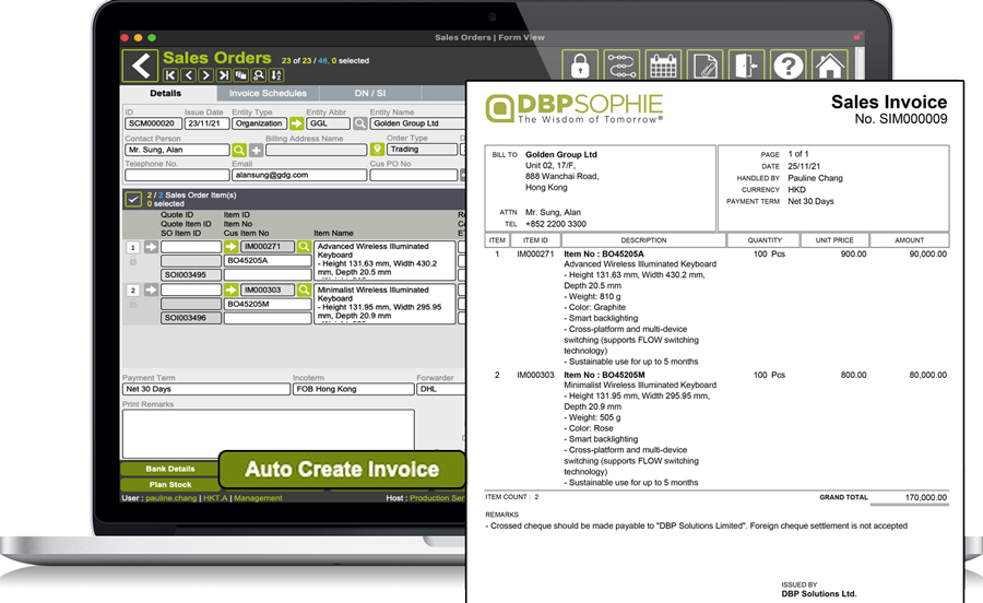 Streamline your workflow, eliminate repeating data entries and human errors by having DBP system to create the subsequent document for you, e.g. auto creates sales order from quotation, purchase order from sales order, etc